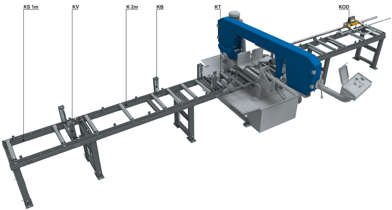 Bộ phận không thể thiếu khi cắt vật liệu theo từng bó. Dành riêng cho băng tải phiên bản KB có các con lăn dọc thụ động